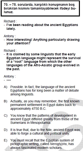 Sınav Adı: 2009 İlkbahar Dönemi İngilizce Kamu Personeli Dil Sınavı