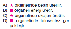 Besin ve O2 üreten organel kloroplast,