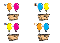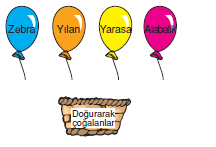 şekildeki sepetin uçabilmesi için üzerinde doğurarak çoğalan canlıların yazılı olduğu balonların sepete bağ- lanması gerekmektedir.Buna göre, aşağıdaki sepetlerden hangisi uçabilir?