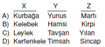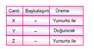 göre X, Y ve Z omurgalı canlılar