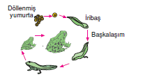 Yukarıdaki şemada kurbağanın geçirdiği başkalaşım evreleri gösterilmiştir.