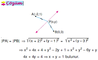 A(–2, 1) ve B(0, 3) noktalarına eşit uzaklıkta bulunan noktaların geometrik yerinin denklemini bulunuz.