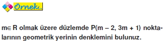 Bu P(x, y) noktasının koordinatlarının arasındaki bağıntı, problemde koşulu sağlayan noktaların geometrik yerinin denklemidir.